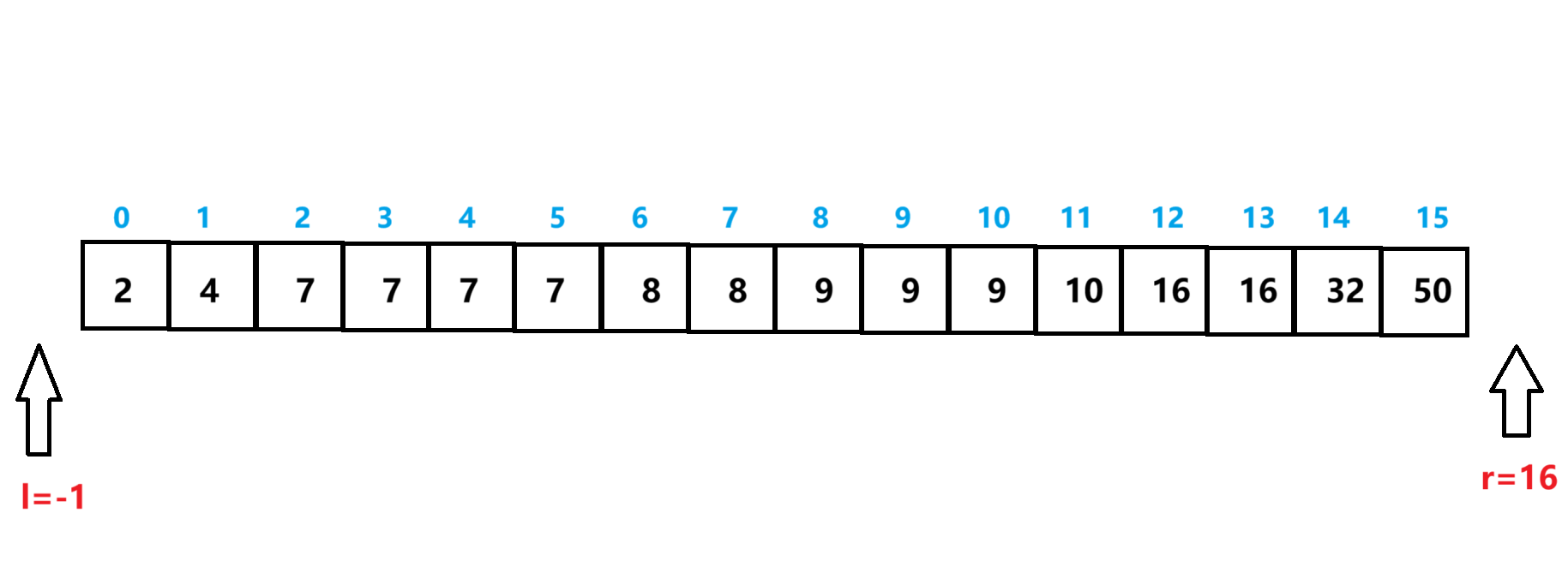int arr[] ={2,4,7,7,7,7,8,8,9,9,9,10,16,16,32,50};