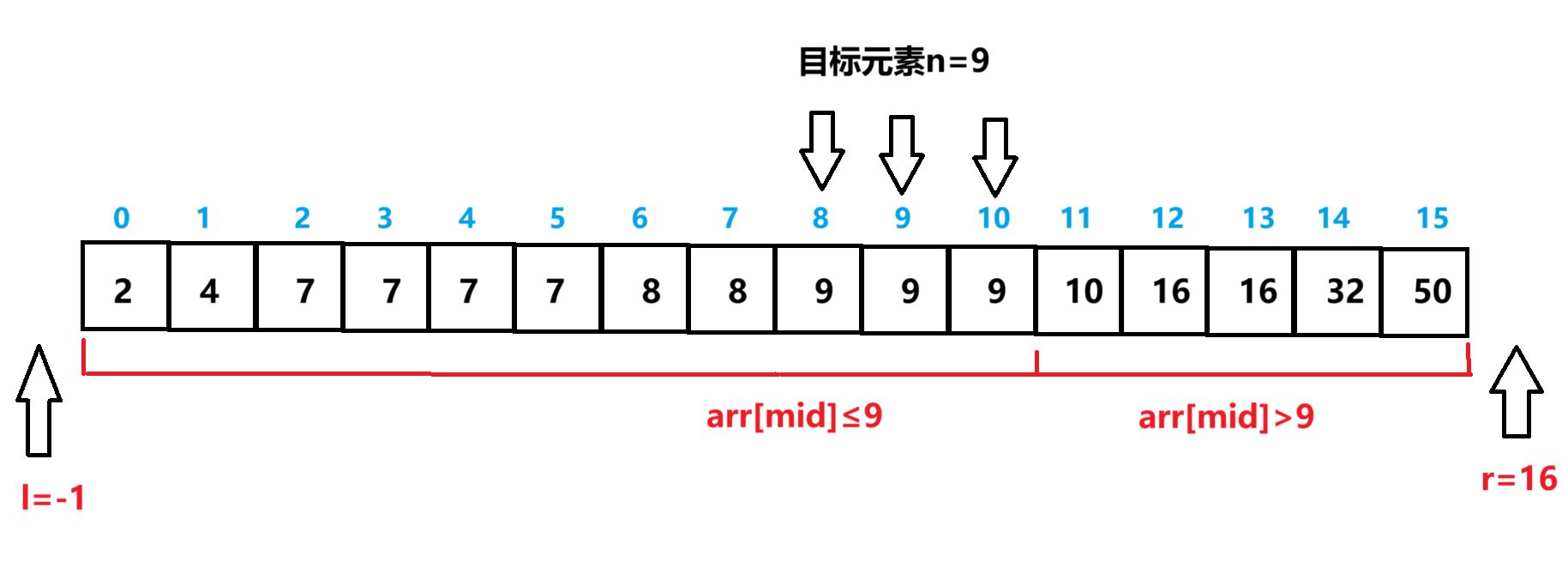 if(arr[save_r]==n)//找到了目标元素的最大下标 ,上面已经验证最小下标了,故不需要验证了。