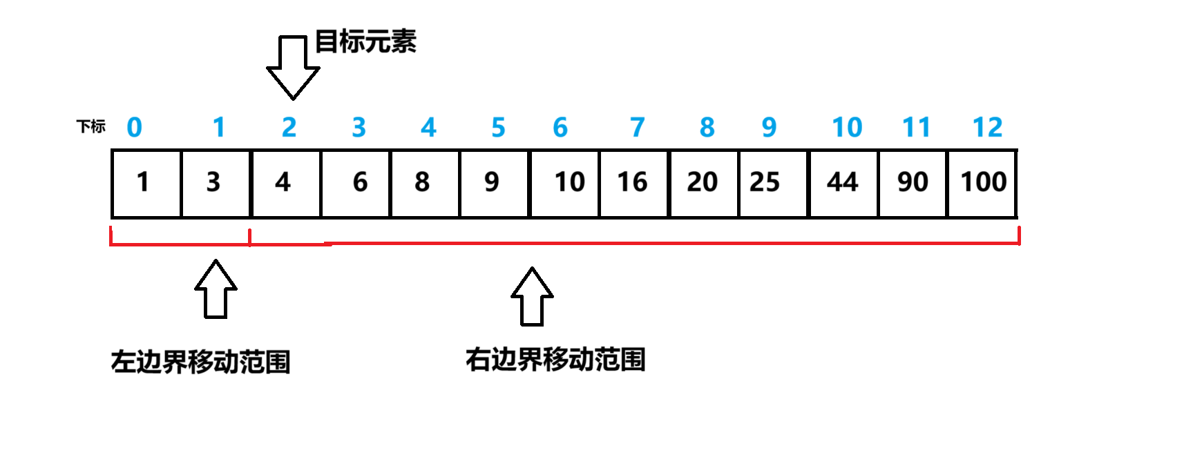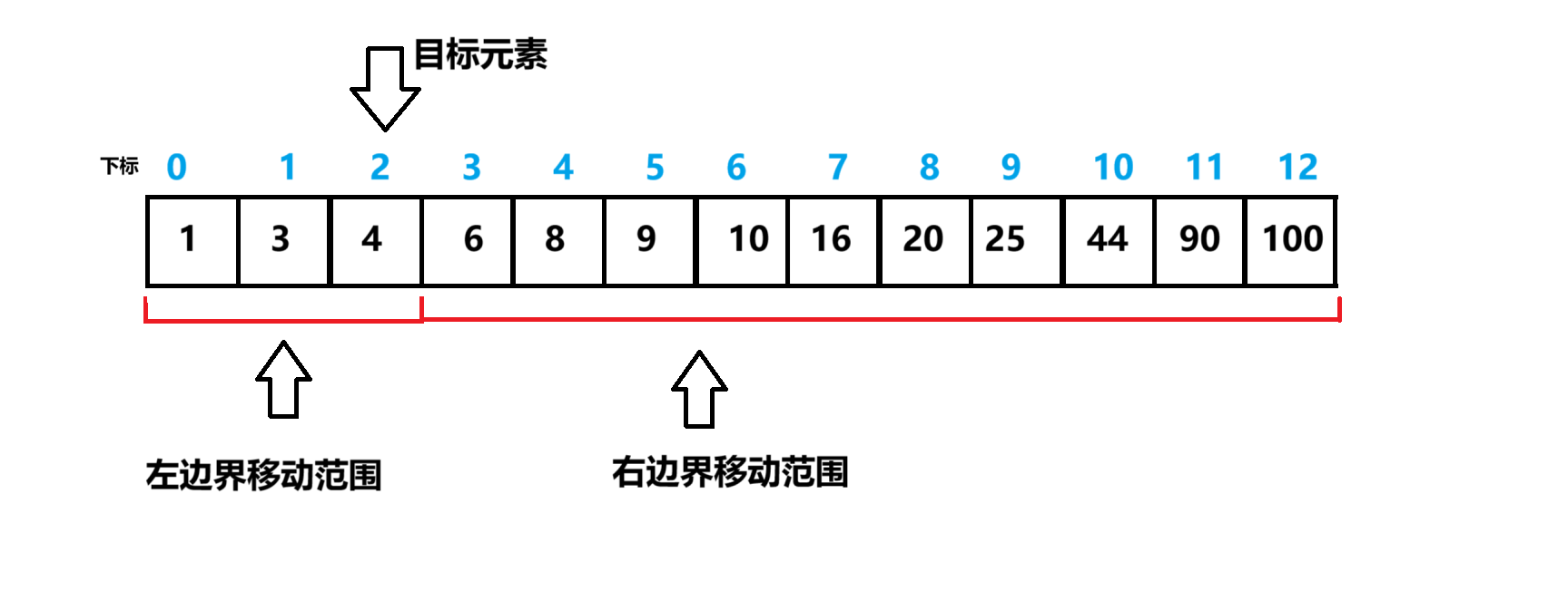 - 这里的左边界和右边界的范围一定要是[答案左边界-1,答案右边界+1],否则在查找边界元素时,如上面的1或者100,会查找失败(非边界元素不用考虑边界)。